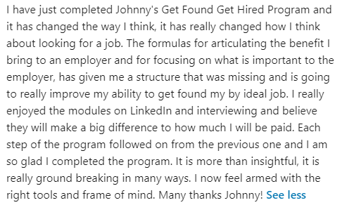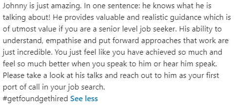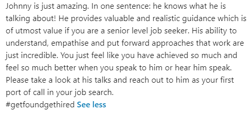 Hi, I’m Johnny and over the last 15+ years, I have helped hundreds and hundreds of frustrated, angry, disappointed executives, get their ideal job, faster, for more money, without even selling themselves.